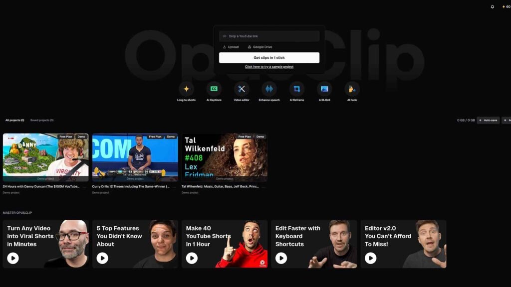 On the other hand, we have Opus Clip. While Gling helps you make your main video, Opus Clip is obsessed with social media. It takes your long-form content and chops it up into short, vertical videos for TikTok, Instagram Reels, and YouTube Shorts.