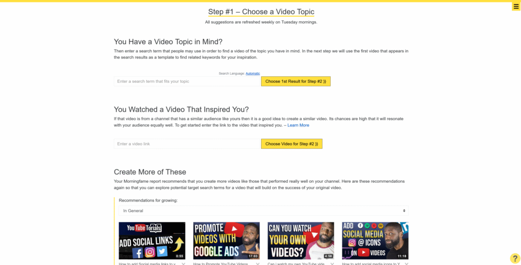 MorningFame allows you to come up with the topic on your own, copy and paste a video link that inspired you to create a video on a certain topic or even take inspiration from your existing content to dive further into the topic at hand.