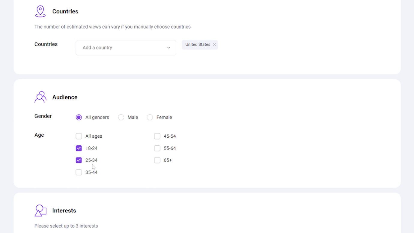 Go to dashboard and there will be two options. More views, and more interactions. The differences are with more views you’ll get guaranteed views, flexible audience targeting.