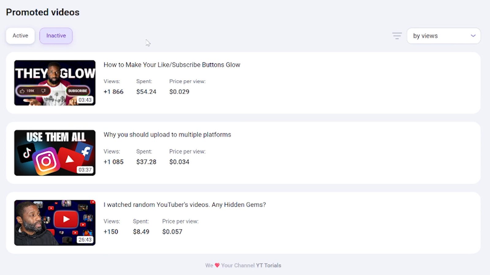 So you can kind of see that with the last video, it did not get as many views. The other ones pretty much took the bulk of the budget.