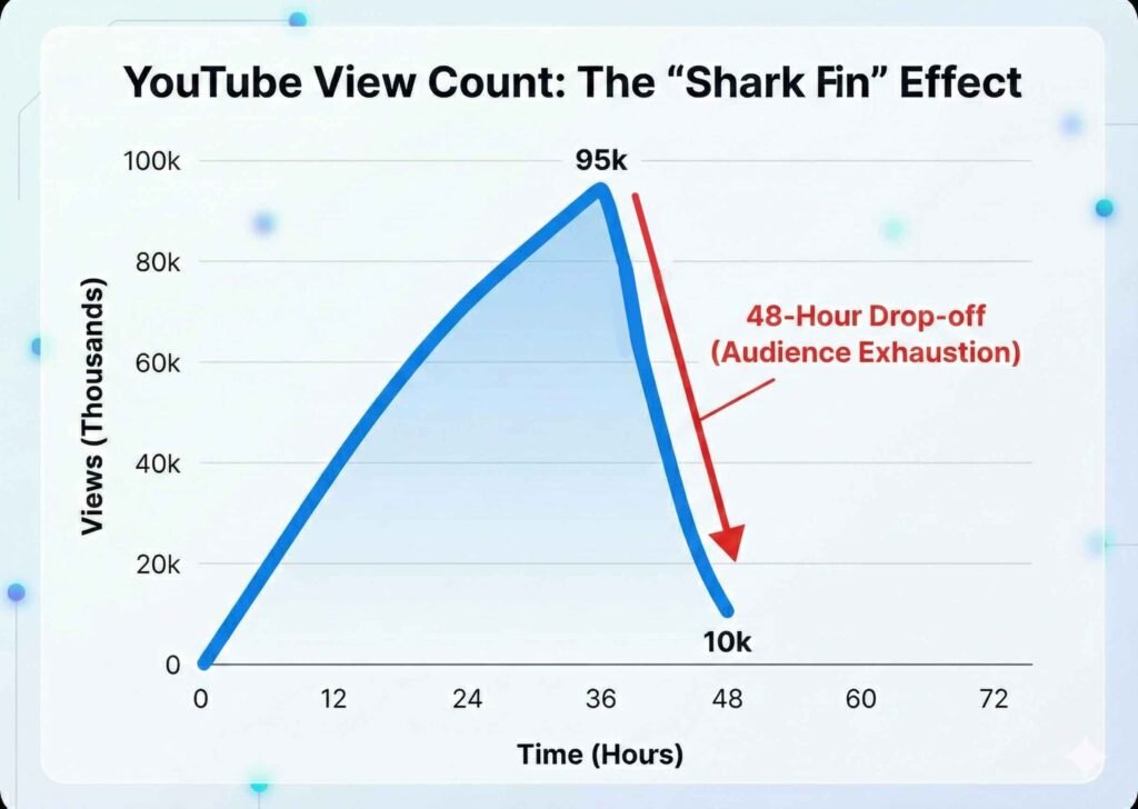 Many creators panic when they see their views drop off a cliff after two days. This is often called the “Shark Fin” graph. However, this is usually a normal part of the video lifecycle.
